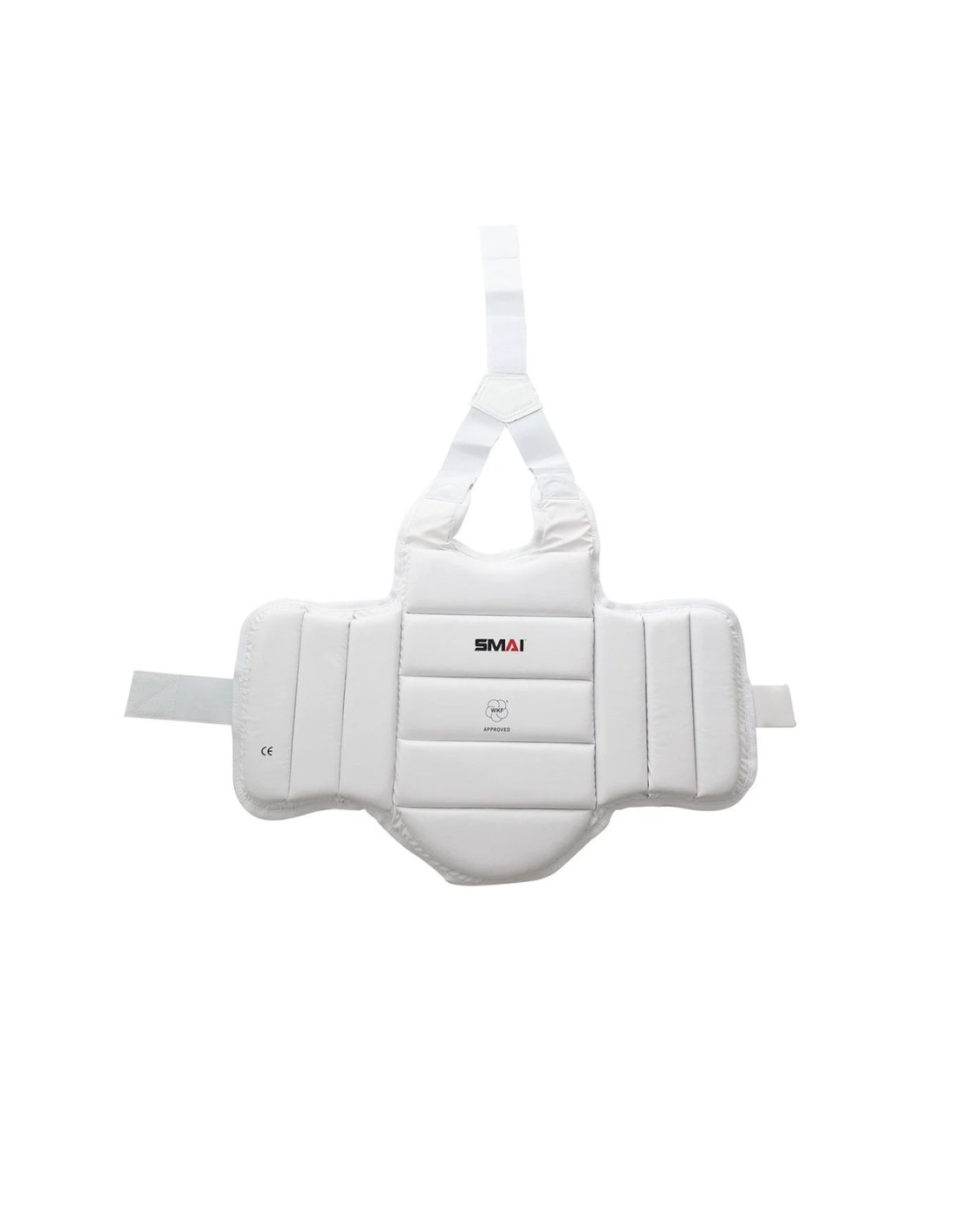 • Material: Espuma inyectada con recubrimiento en polialgodón y respaldo en lycra • Diseño: Anatómico, ligero y ajustable con cierre de velcro • Tallas: XS, S, M, L y XL • Color: Blanco, para usarse debajo del uniforme • Certificación: Aprobados por la World Karate Federation (WKF)